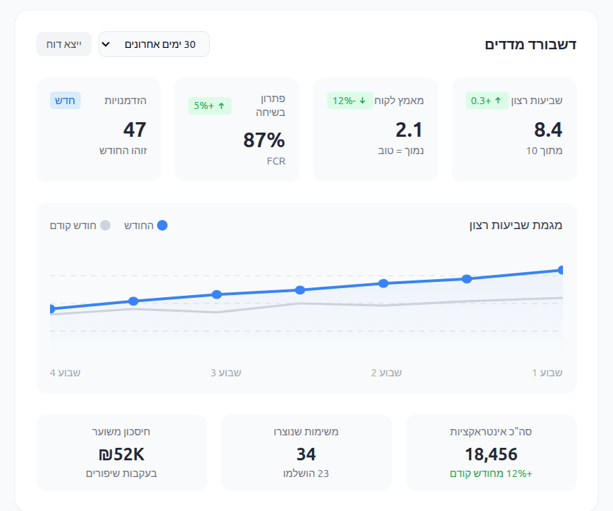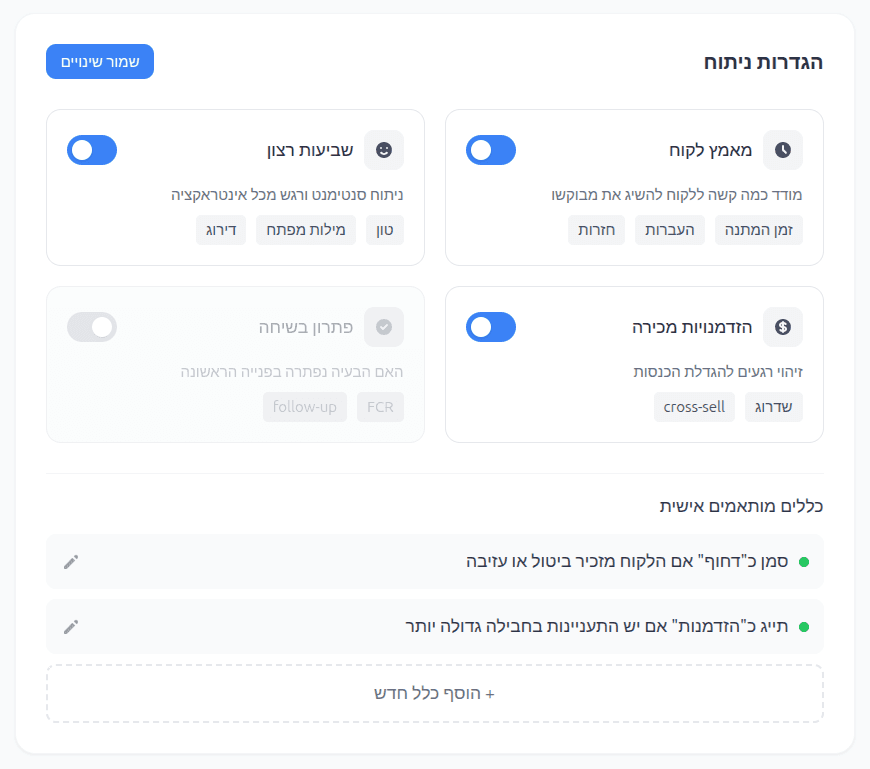 הגדירו מה חשוב לכם - מאמץ לקוח, שביעות רצון, הזדמנויות מכירה ועוד. המערכת מתאימה את עצמה